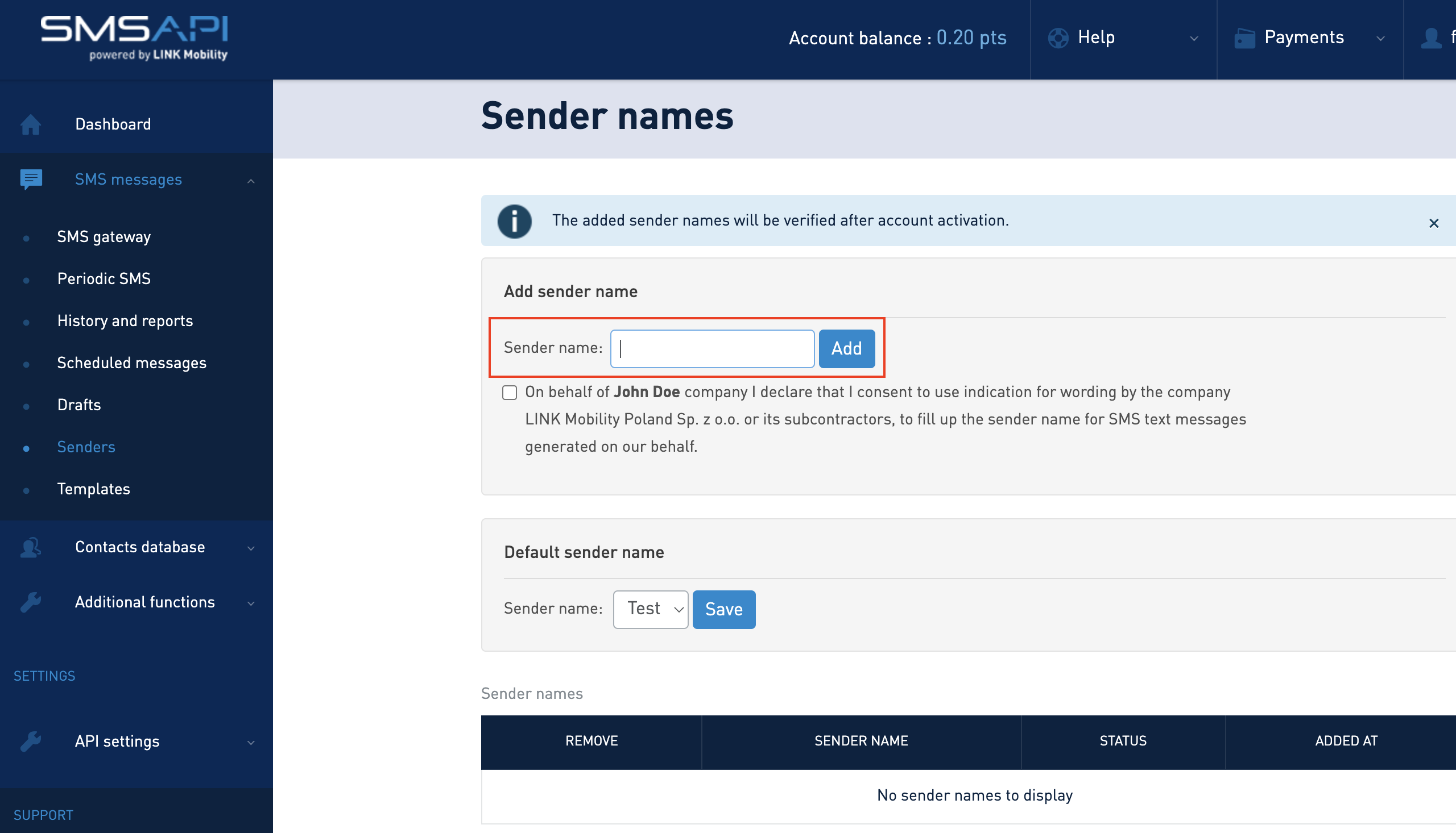 Go to this page to create a new sender.